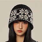 【Decoy】雪花格紋 秋冬時尚保暖針織漁夫帽/黑色 NT$ 399