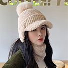 【Decoy】純色毛球 羊羔絨護耳針織鴨舌帽+圍脖/卡其 NT$ 669