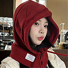 【Decoy】針織時尚 多巴胺風一體針織脖圍護耳帽/紅色 NT$ 599