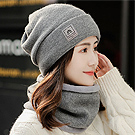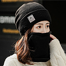 【Decoy】簡約保暖 純色針織加絨護耳帽+圍脖/黑 NT$ 399