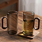 【iSFun】高雅簡約 耐高溫木質把手玻璃茶水杯360ml/2入 NT$ 499
