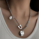【伊飾童話】拼接珍珠*不對襯圓牌鈦鋼長項鍊