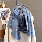 【Decoy】秋冬萌趣 貓咪圖騰仿羊絨雙用披肩圍巾/湖藍