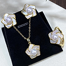 【伊飾童話】白貝花朵 天然珍珠典雅項鍊耳環戒指三件組 NT$ 1280