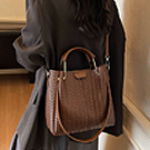【iSPurple】百搭通勤 仿皮編織壓紋復古托特包/棕色 NT$ 669