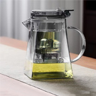 【iSFun】天圓地方 不鏽鋼過濾網蓋耐熱四方玻璃泡茶壺950ml