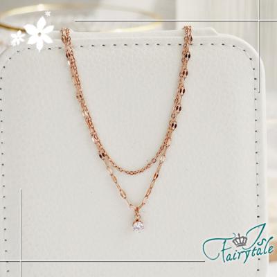 【伊飾童話】韓風單鑽*雙層鈦鋼玫瑰金鎖骨項鍊