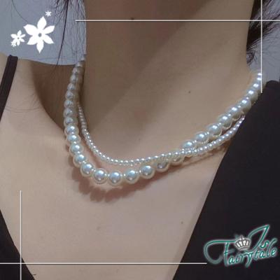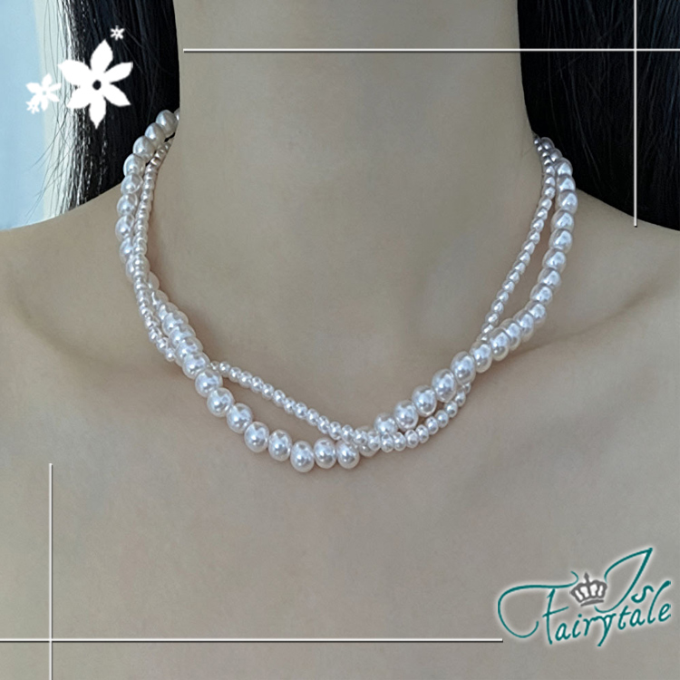 【伊飾童話】珍珠交錯 法式復古雙層纏繞短頸鍊
