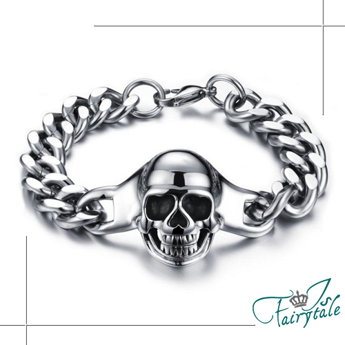 【伊飾童話】龐克骷髏頭*精緻白鋼中性手鍊