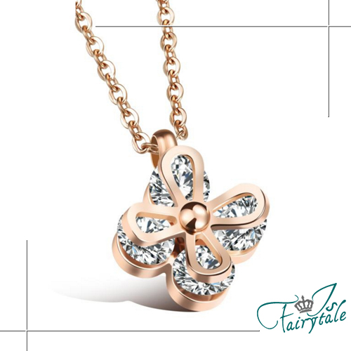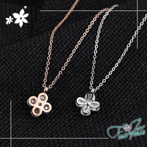 【伊飾童話】白耀之花*鋯石玫瑰金項鍊