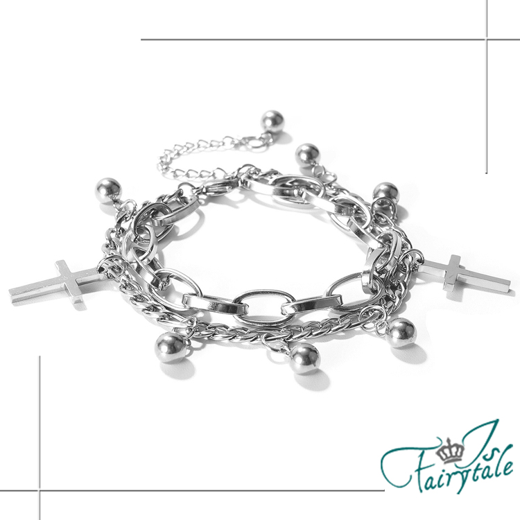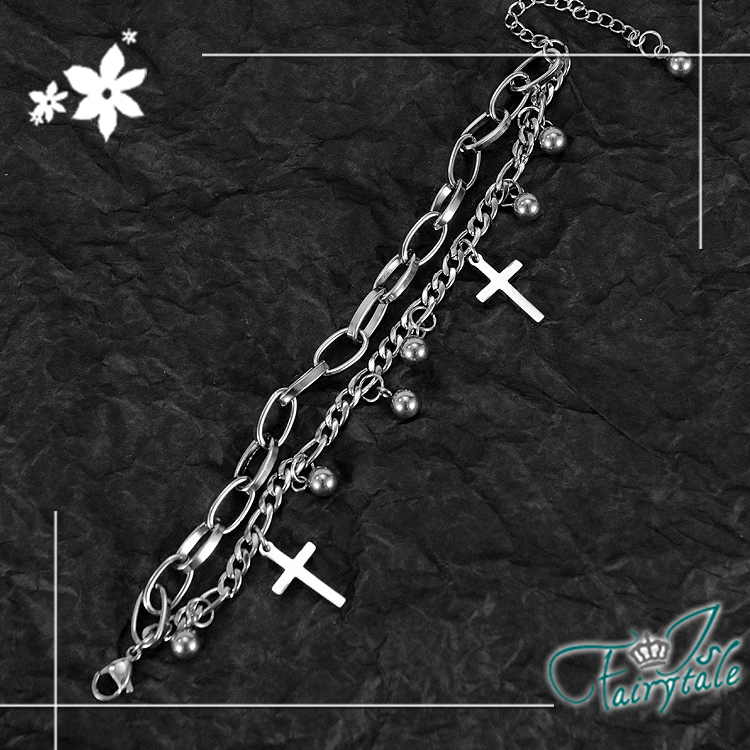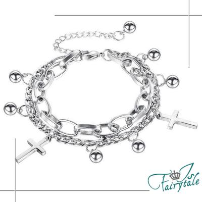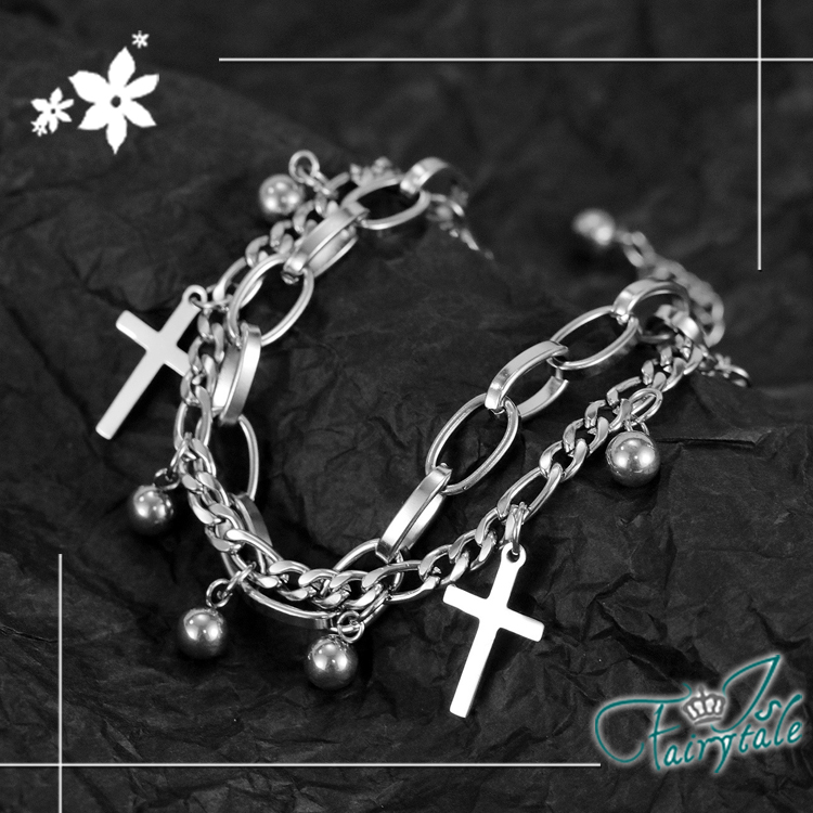 【伊飾童話】個性十字架*鈦鋼中性麻花多層手鍊