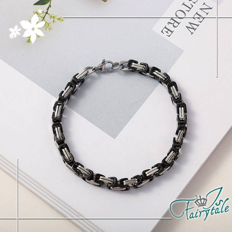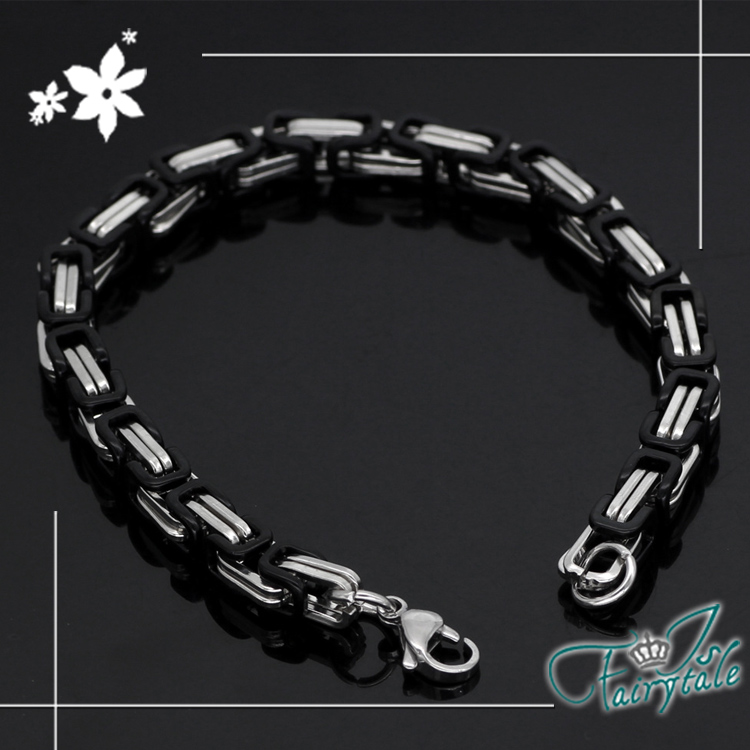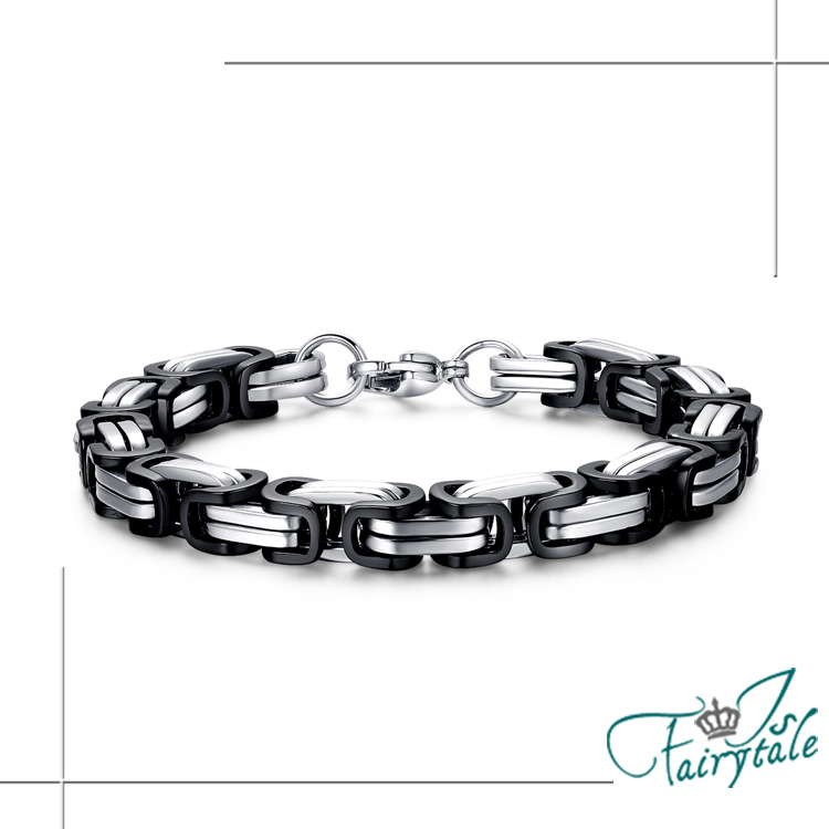 【伊飾童話】雙色融合 不鏽鋼帝王鏈中性復古手鍊/黑銀