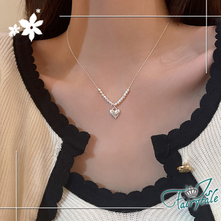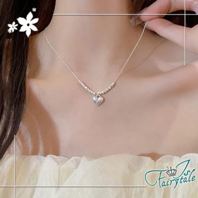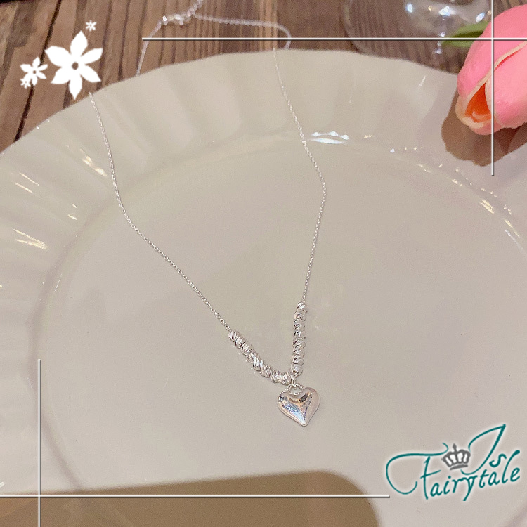 【伊飾童話】串珠愛心 輕奢甜美圓珠電鍍鎖骨項鍊/銀
