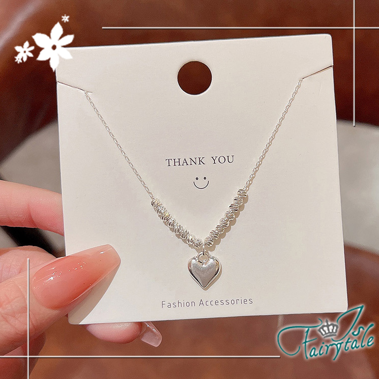 白銀色愛心搭配造型圓珠鎖骨鍊,簡約不失時尚的設計,