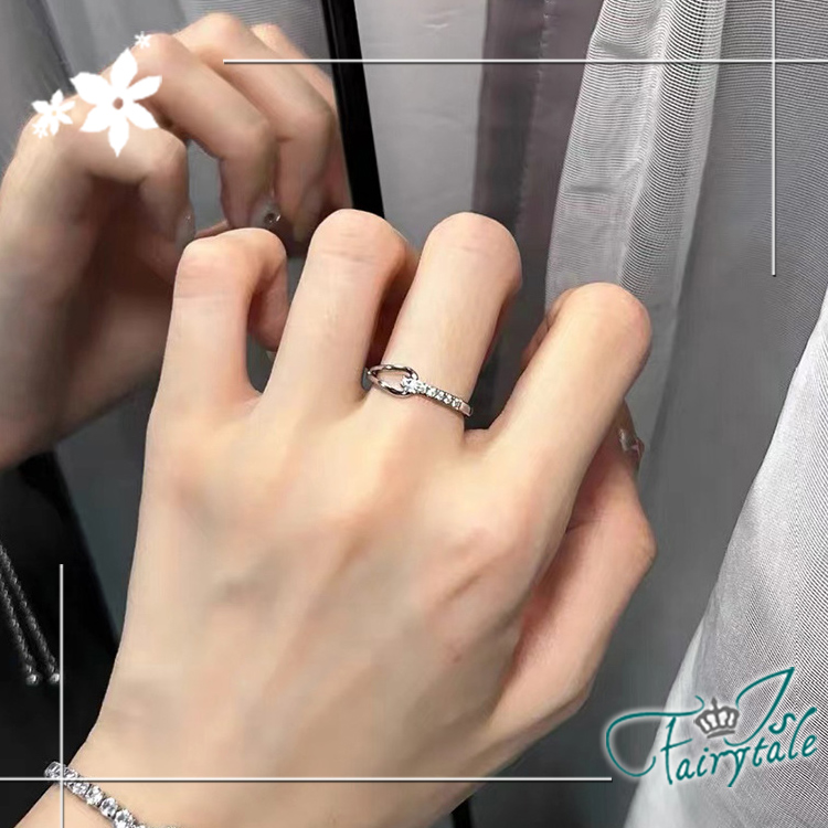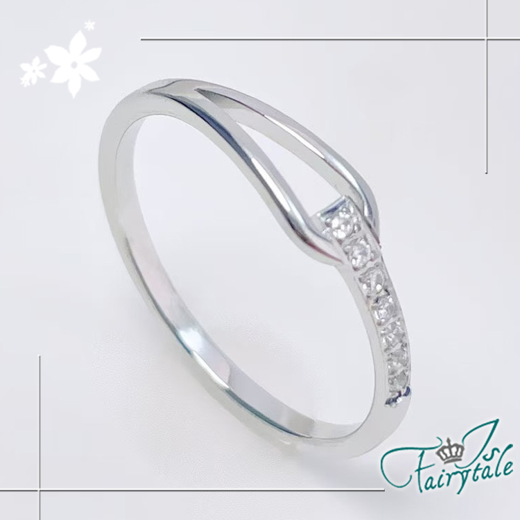 【伊飾童話】鏤空水滴 簡約碎鑽白金鈦鋼戒指/美規7號‧7號