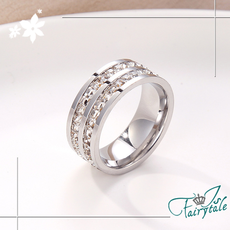【伊飾童話】滿天閃耀 雙層碎鑽鈦鋼寬戒指/7號‧7號