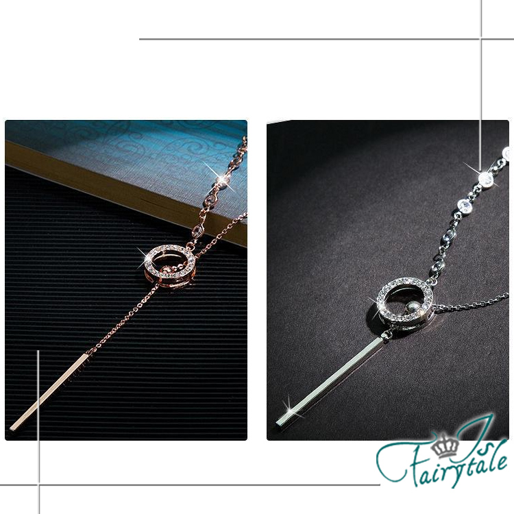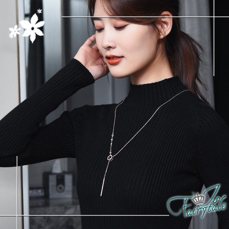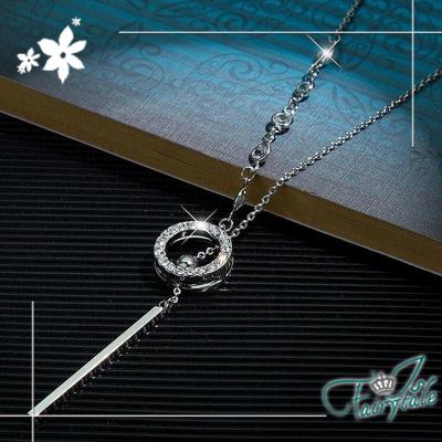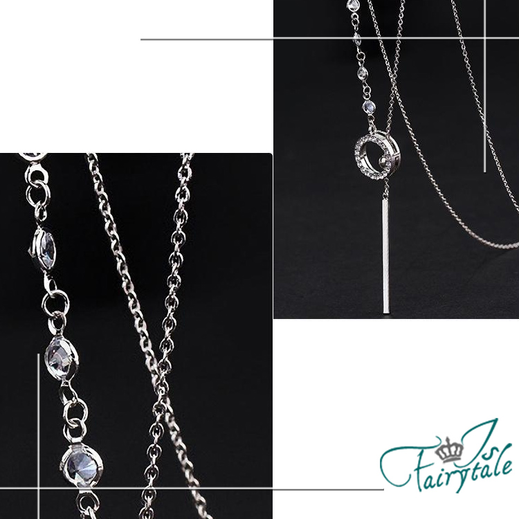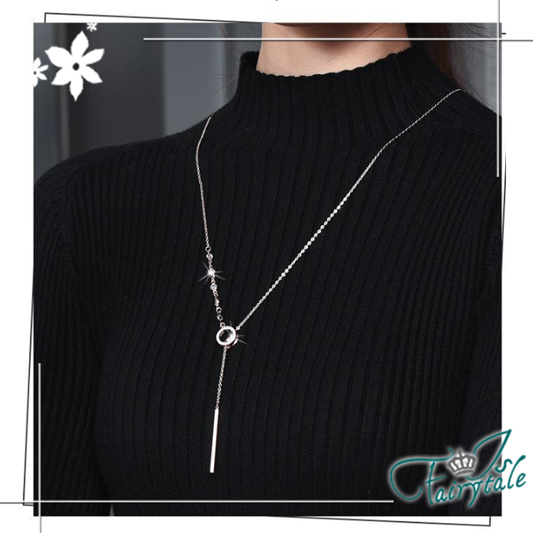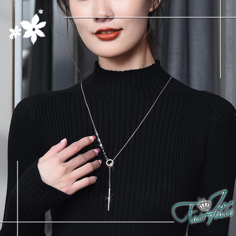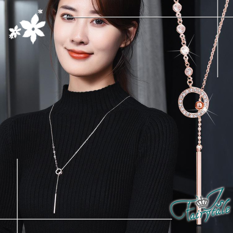 【伊飾童話】單環碎鑽 氣質甜美鈦鋼流蘇伸縮長鍊/白金