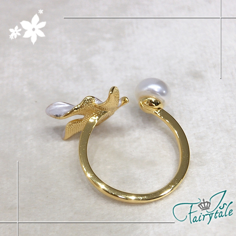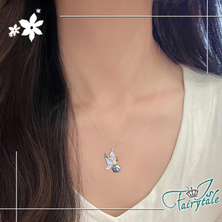 蝴蝶翩翩停駐在珍珠上,溫潤的光澤,低調奢華,