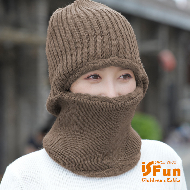毛線帽+圍巾一體成型,外出防風保暖騎車必備,