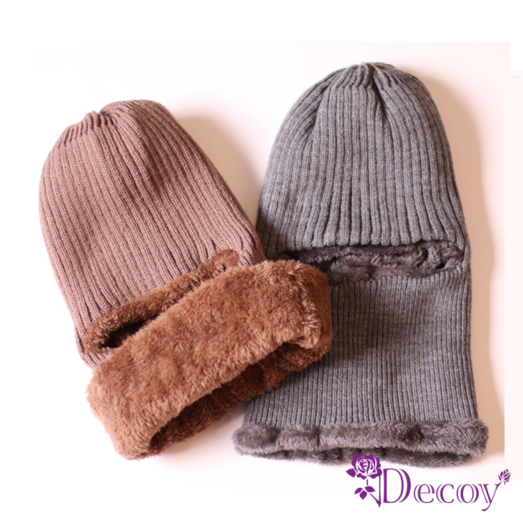 【Decoy】仿羊絨刷毛*男女中性針織加厚護耳毛線帽/卡其
