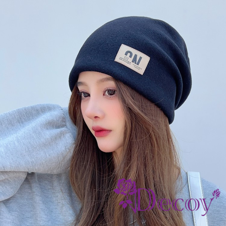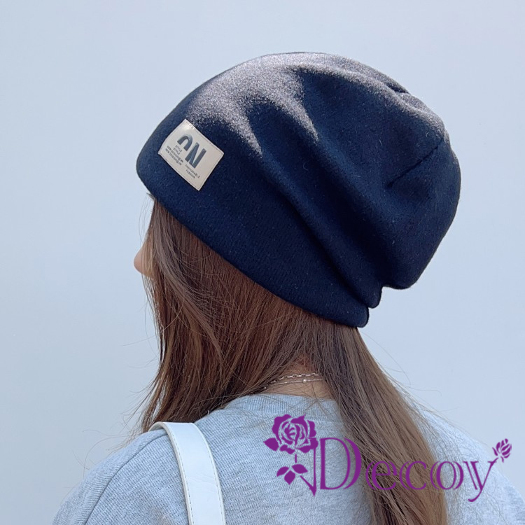 【Decoy】秋冬日系 顯臉小護耳百搭潮流個性針織包頭帽 /黑