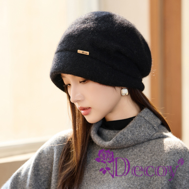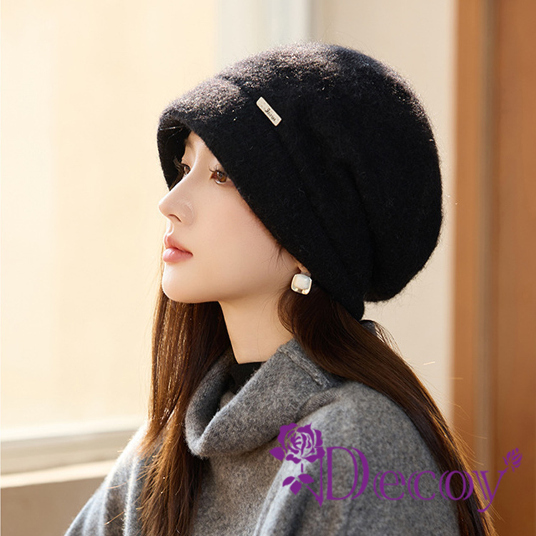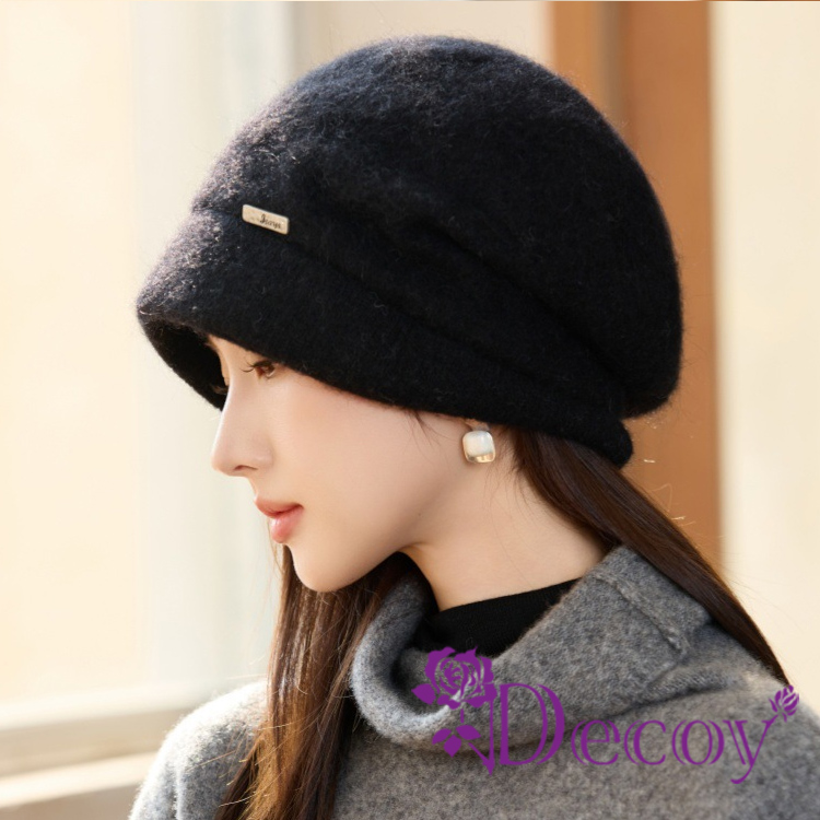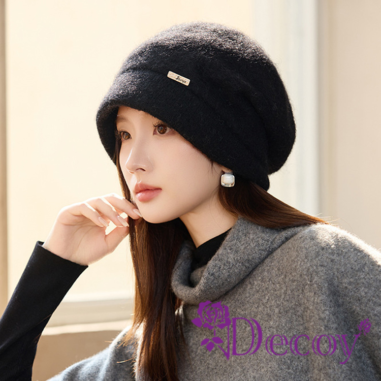 【Decoy】韓系簡約 毛呢護耳百搭秋冬包頭帽/黑