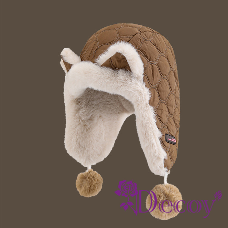 【Decoy】冬季萌趣 狐狸耳朵加厚加絨護耳防寒保暖毛絨帽/咖啡色