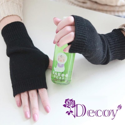 【Decoy】冬季保暖 短版時尚羊絨針織男女通用半指手套/黑