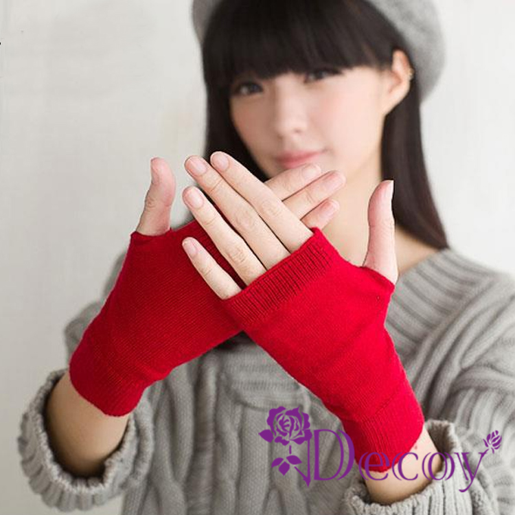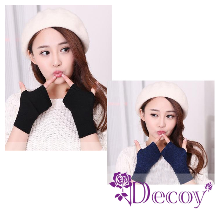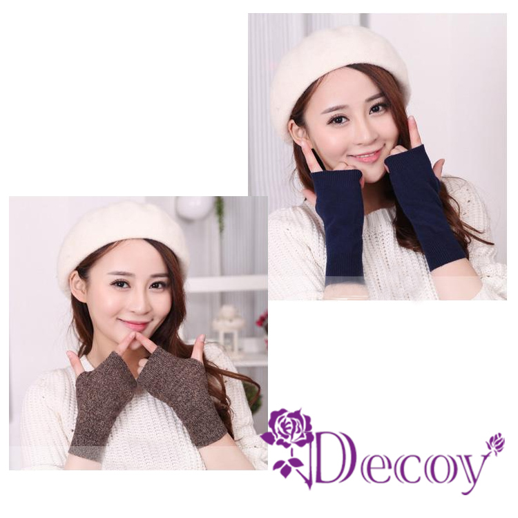 【Decoy】冬季保暖 短版時尚羊絨針織男女通用半指手套/中灰
