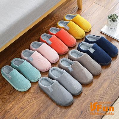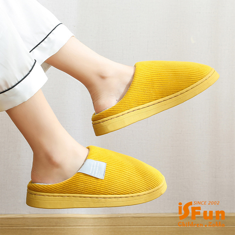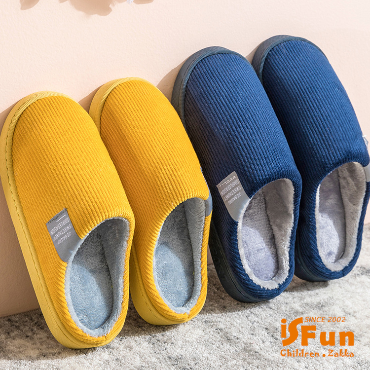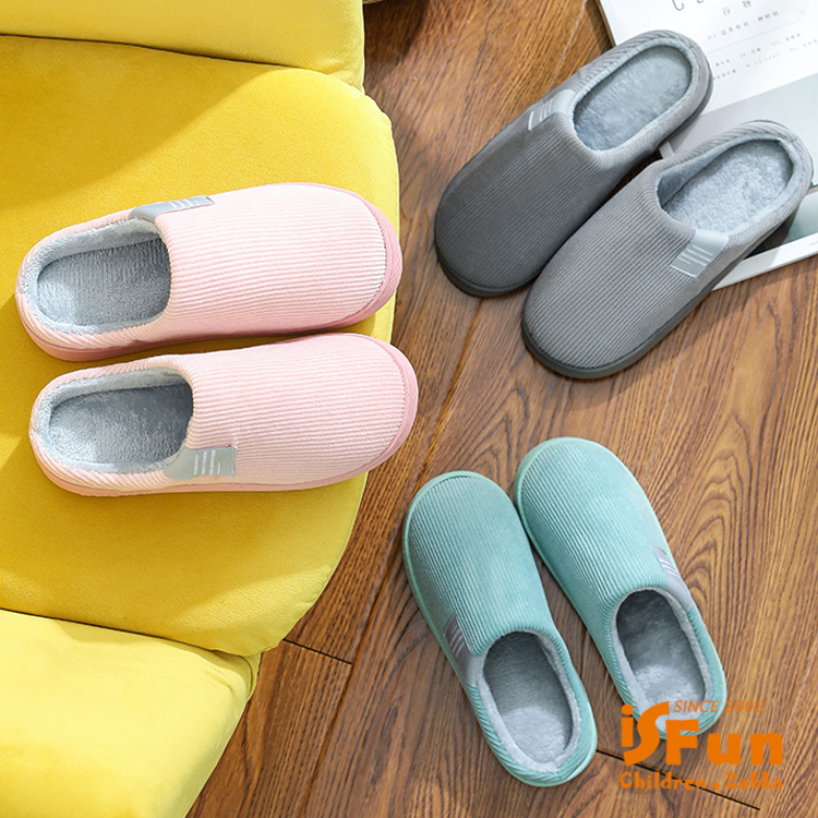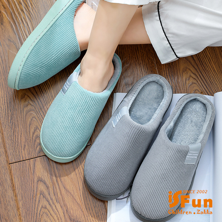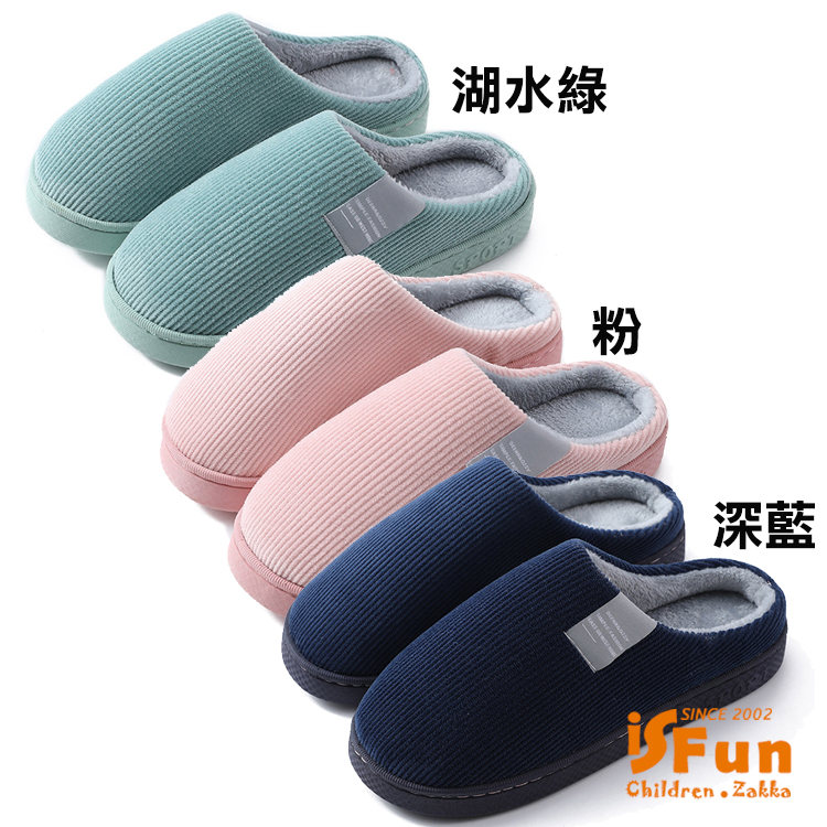 【iSFun】極簡條紋*刷毛保暖室內拖鞋/湖水綠/3839號