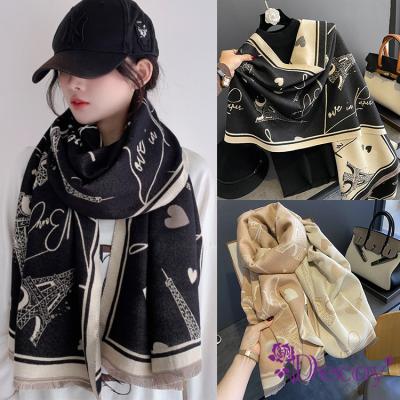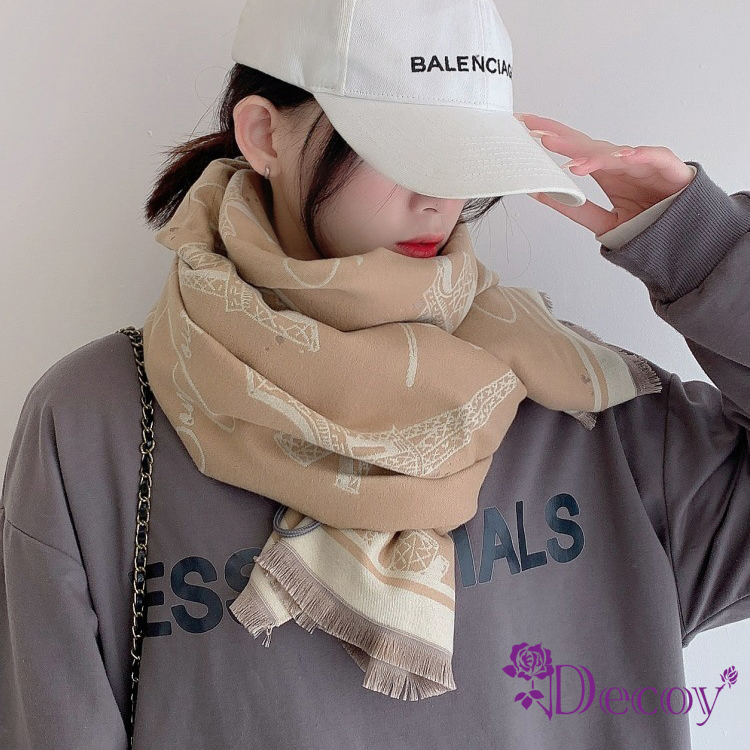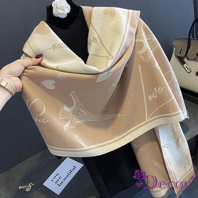 巴黎鐵塔線條印花,雙面撞色短流蘇,精品風格時尚展現,