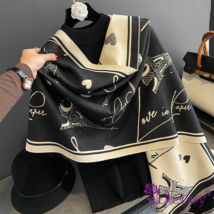 【Decoy】鐵塔風情*撞色加大流蘇披肩圍巾/黑