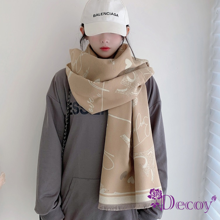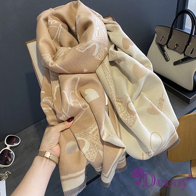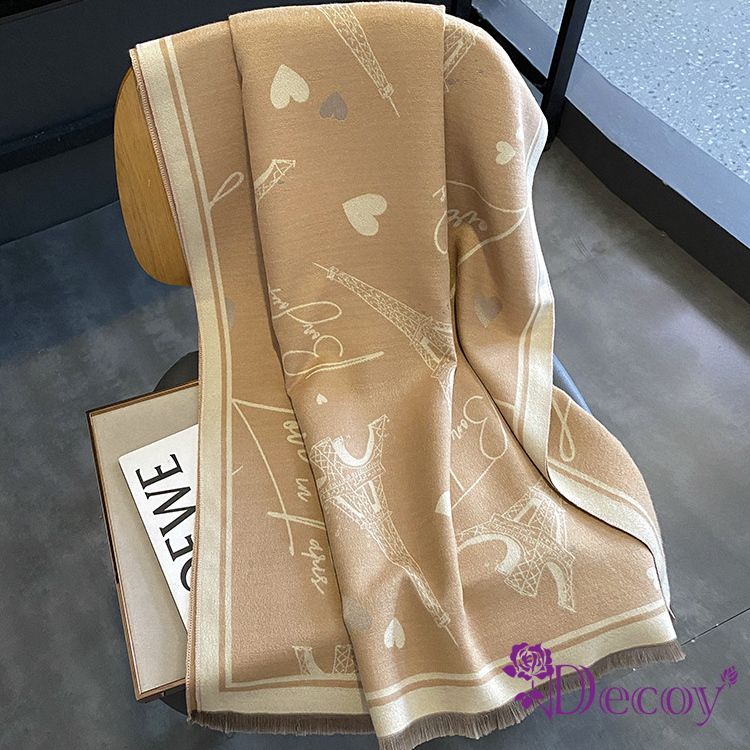 巴黎鐵塔線條印花,雙面撞色短流蘇,精品風格時尚展現,