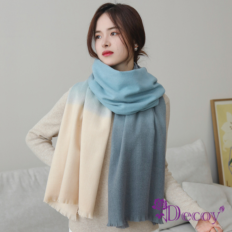 【Decoy】漸層油畫*輕柔仿羊絨加大披肩圍巾/藍米
