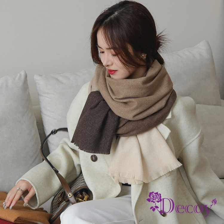 【Decoy】漸層油畫*輕柔仿羊絨加大披肩圍巾/咖啡棕