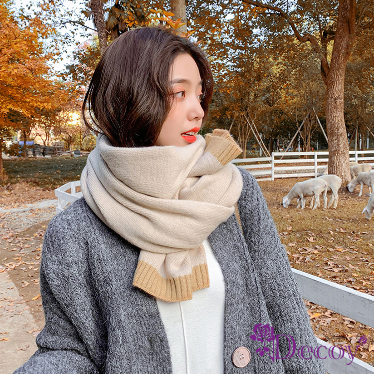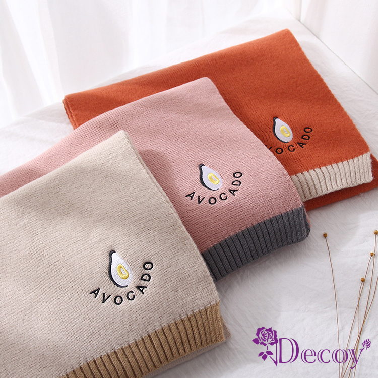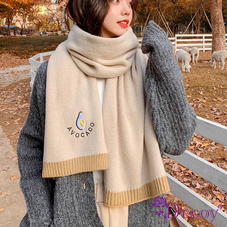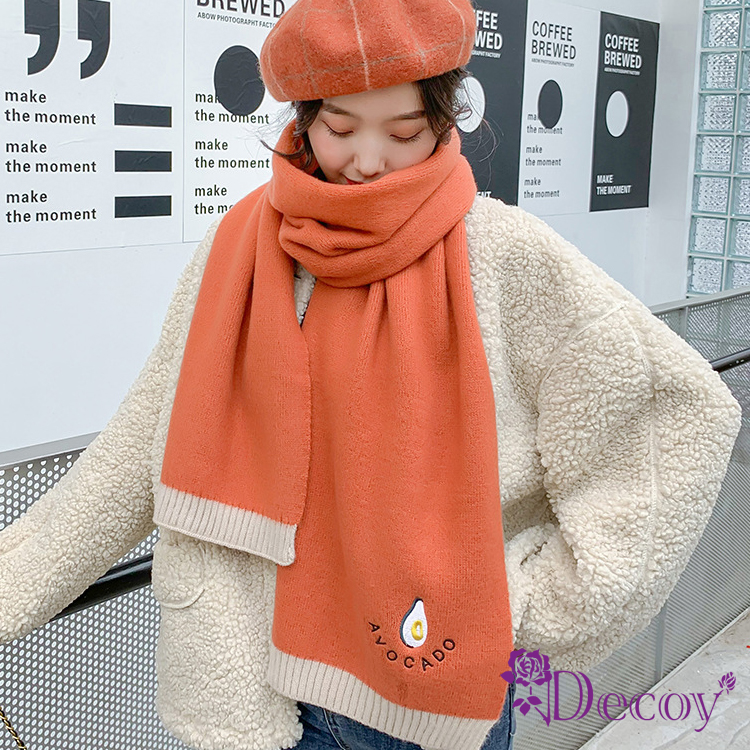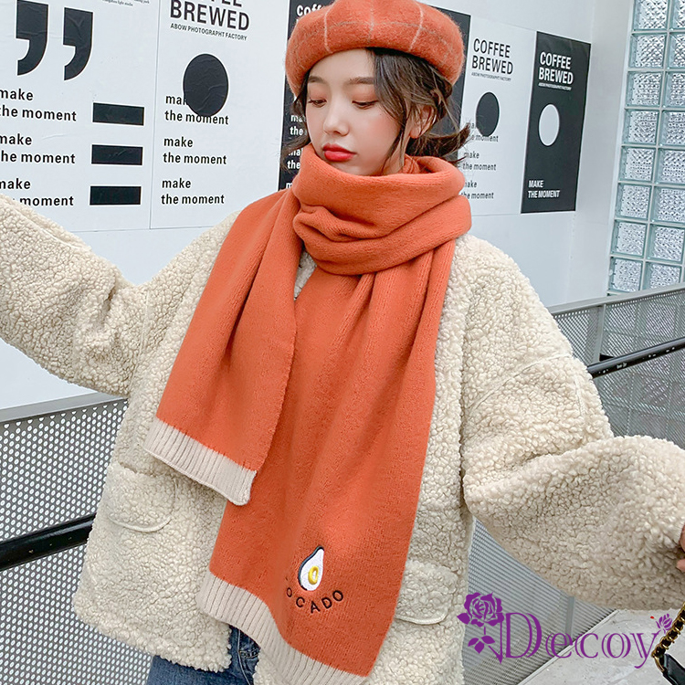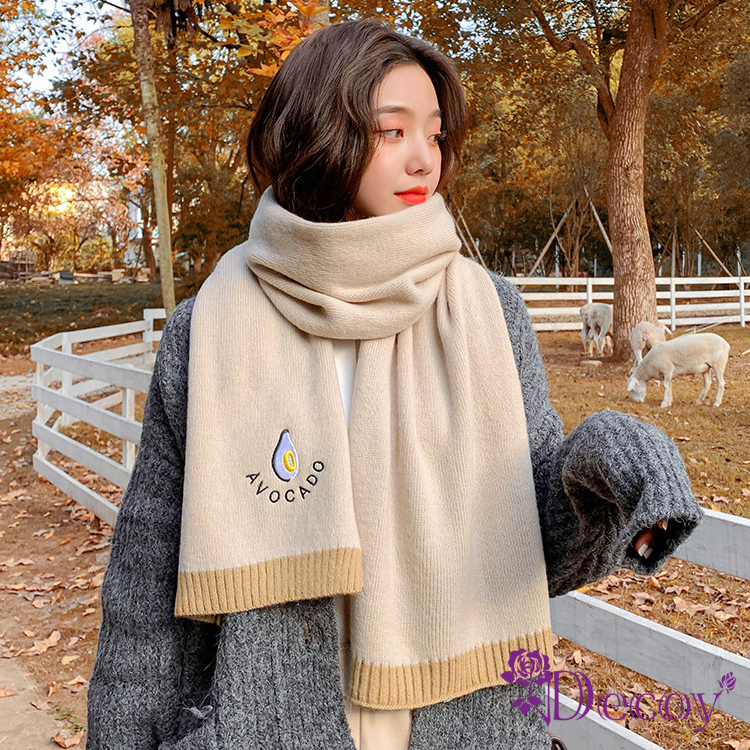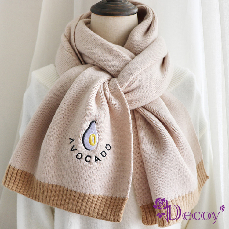 【Decoy】牛油果刺繡*純色仿羊絨保暖圍巾/米