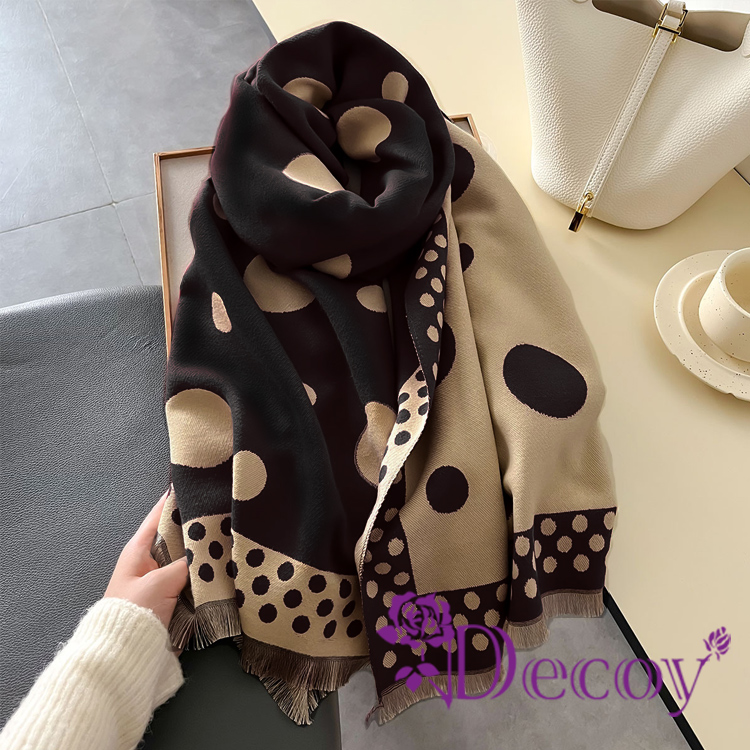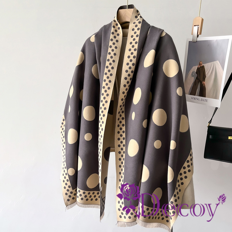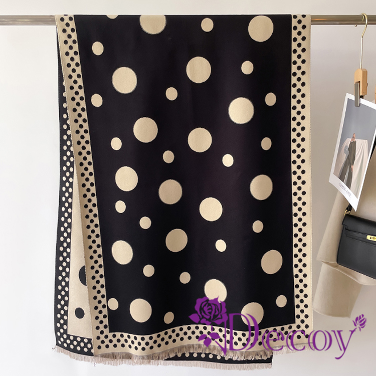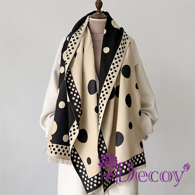 【Decoy】韓版波點 雙色加厚仿羊絨少女風氣質披肩圍巾/黑色