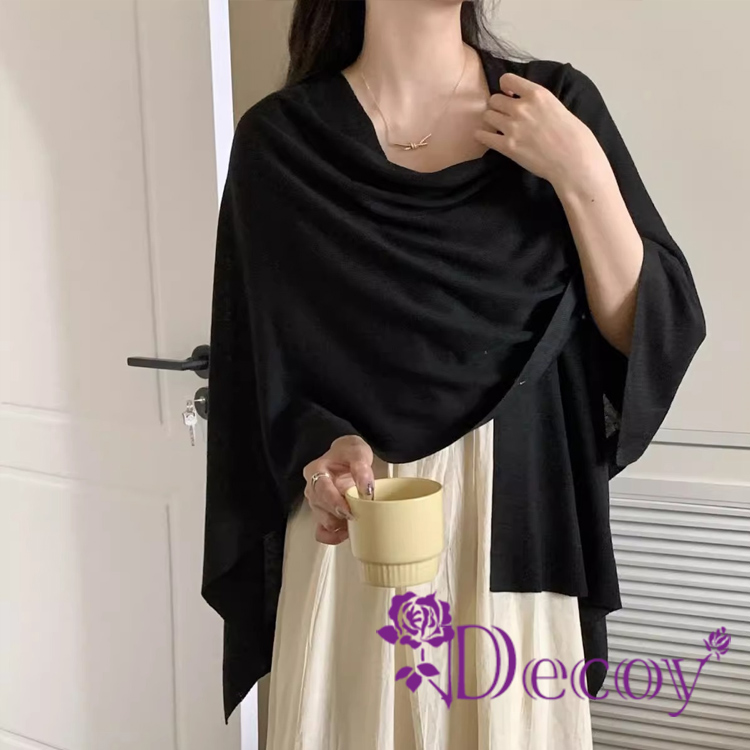 【Decoy】優雅名媛 純色保暖多功能罩衫披肩/黑色