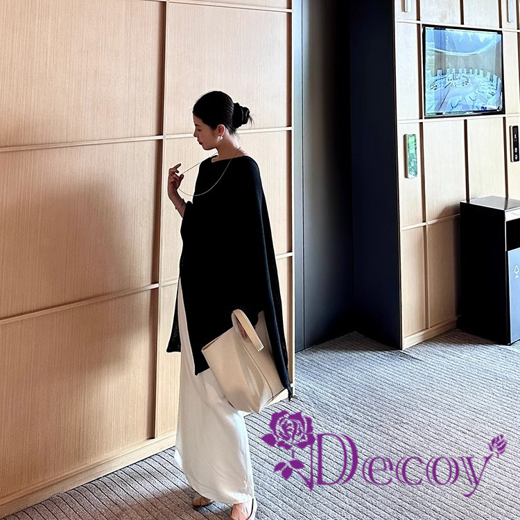 【Decoy】韓版時尚 純色保暖兩用斗篷披肩/黑色