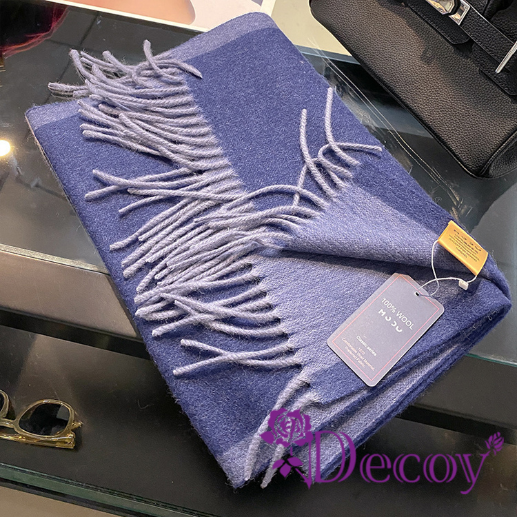 【Decoy】簡約百搭 拼接純色羊毛保暖圍巾/藍紫
