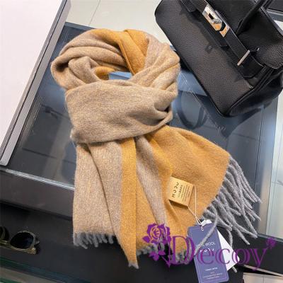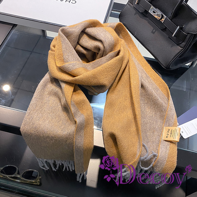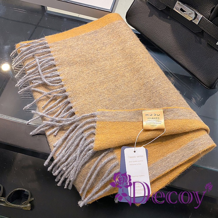 【Decoy】簡約百搭 拼接純色羊毛保暖圍巾/黃色
