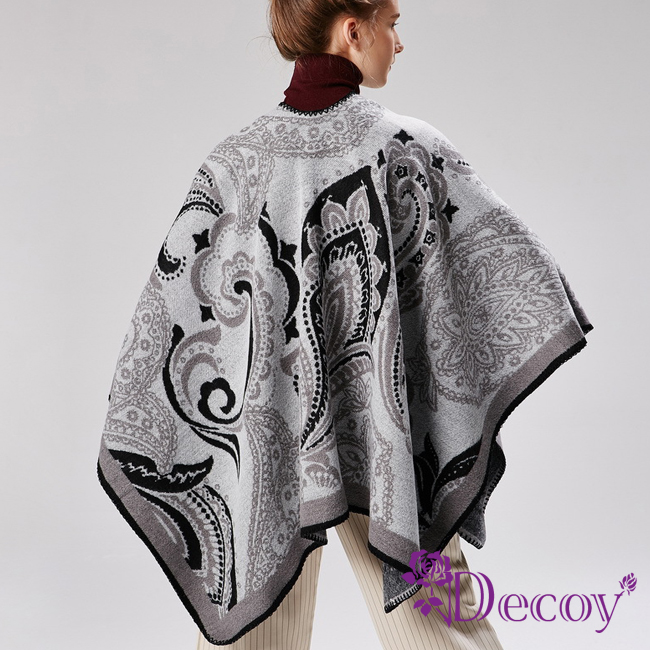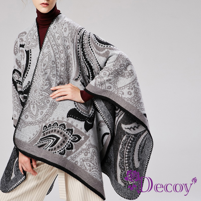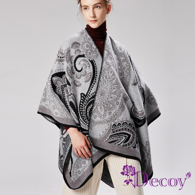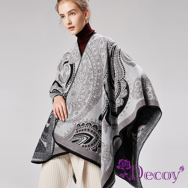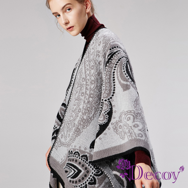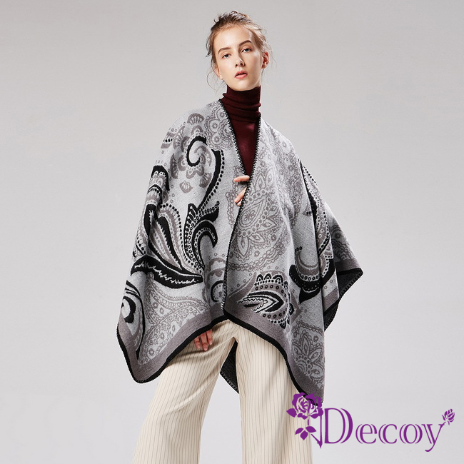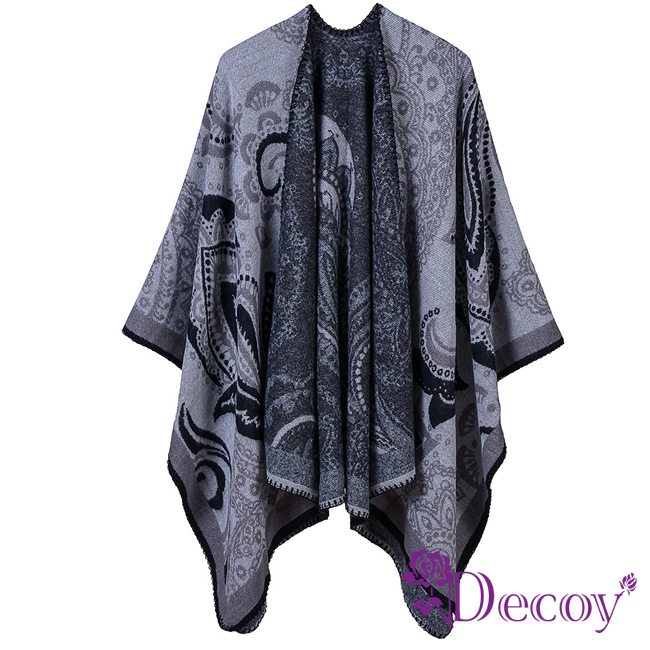 【Decoy】纏綿思想*圖騰加大保暖斗篷式披肩/灰