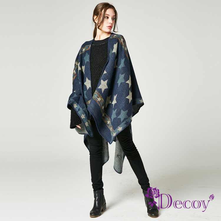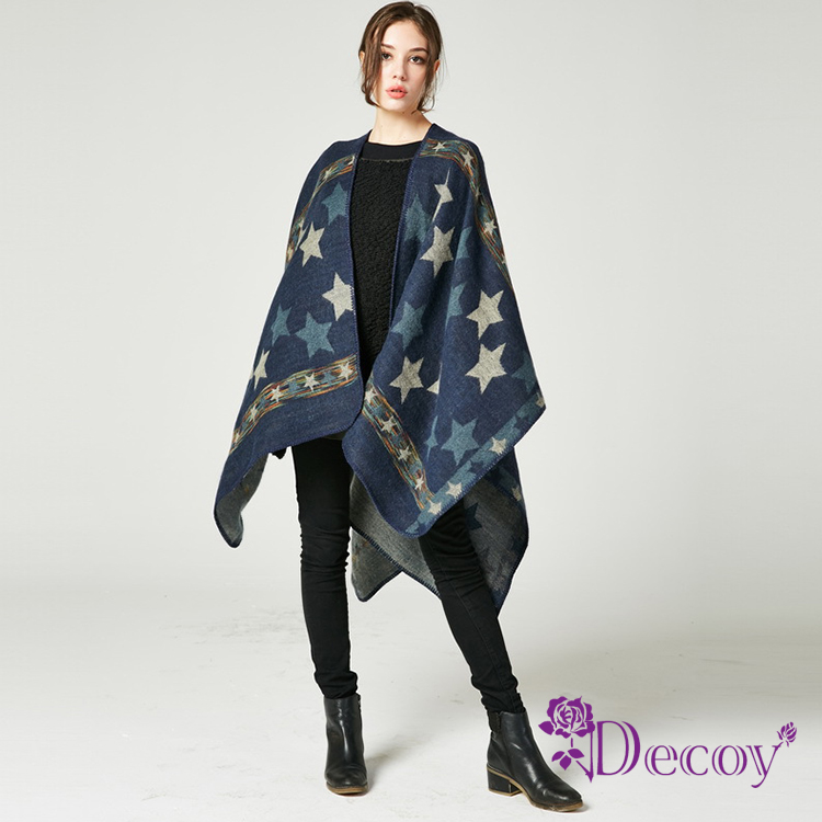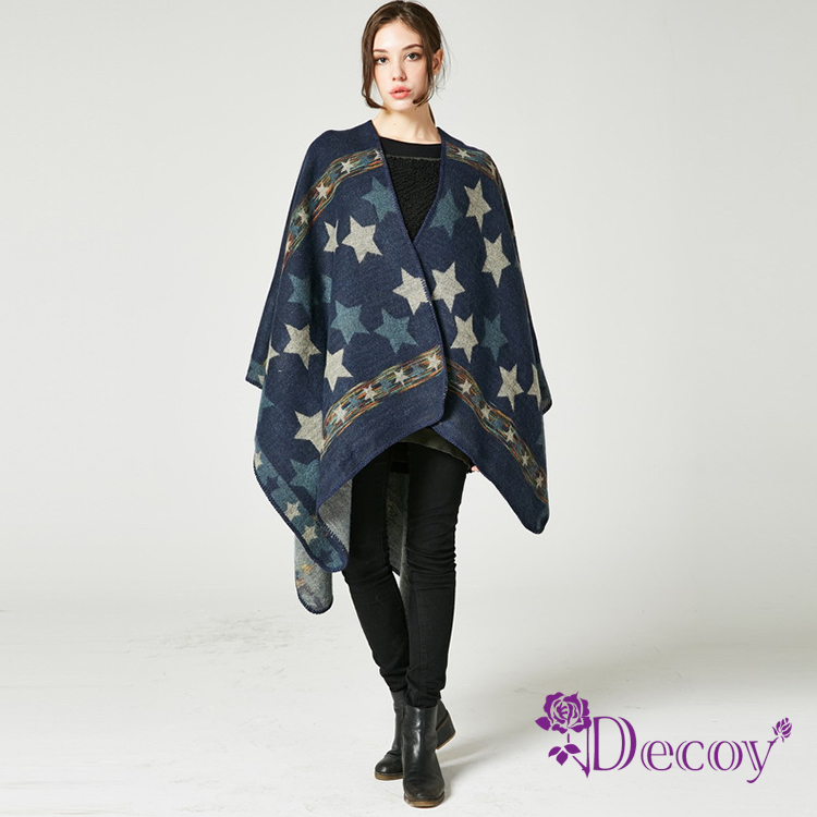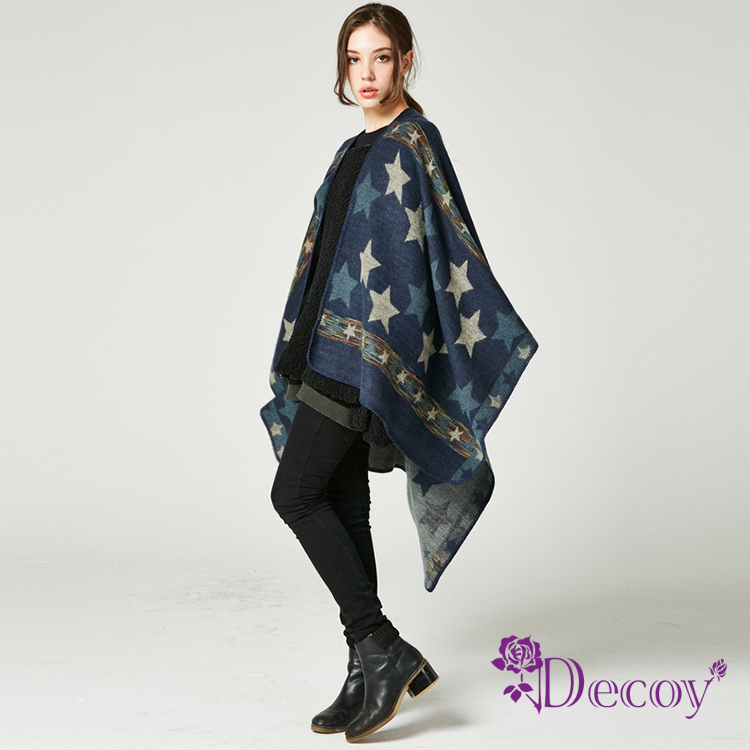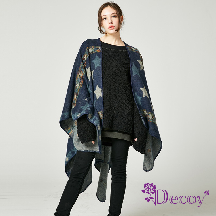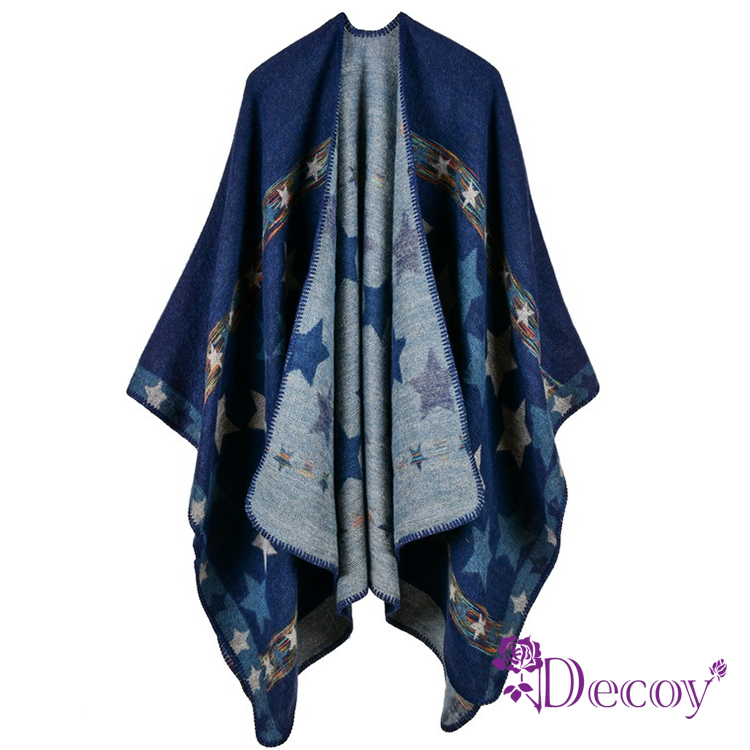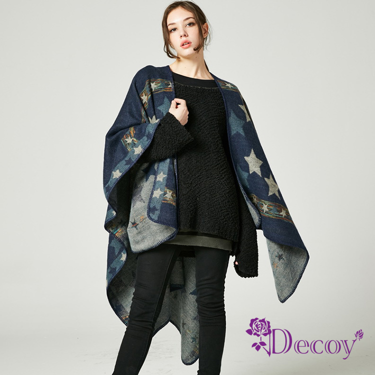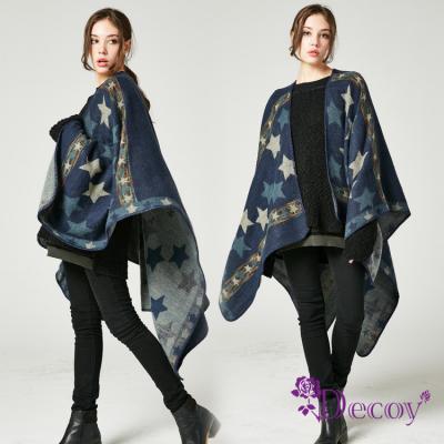 【Decoy】藍夜星辰*雙色加大保暖斗篷式披肩/藍