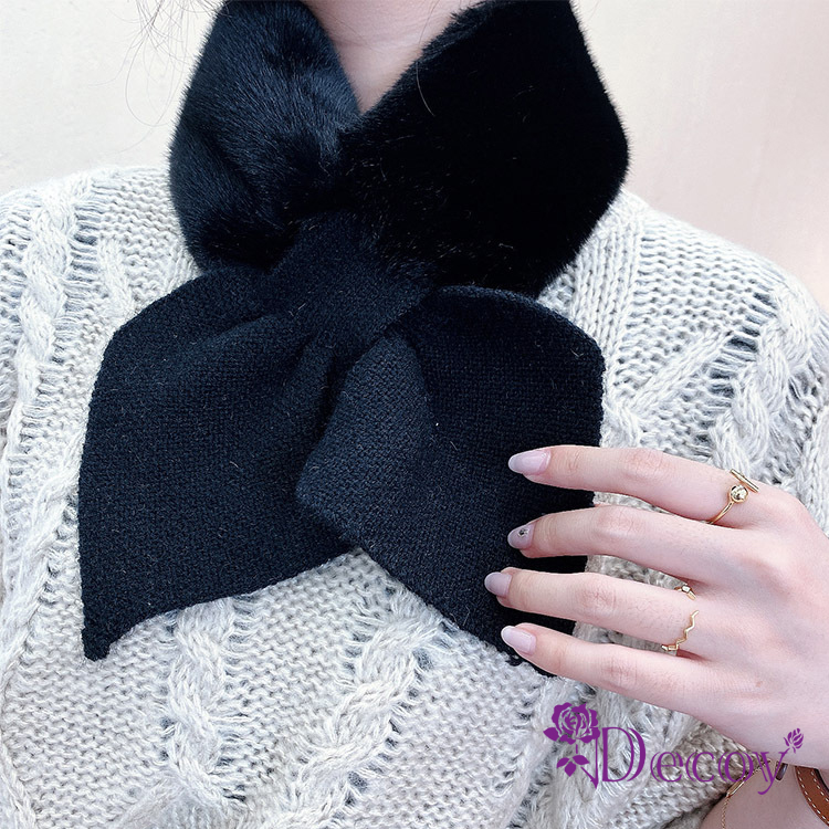 可愛仿兔毛領造型圍巾,加厚保暖力更升級,