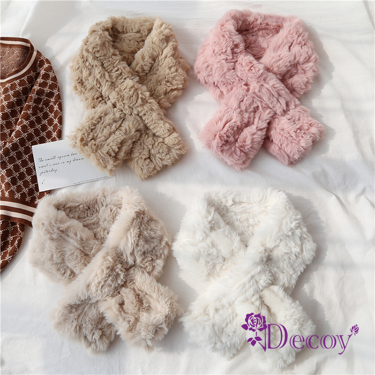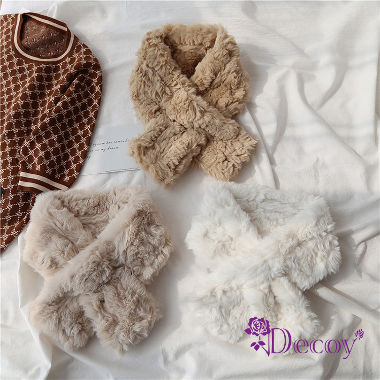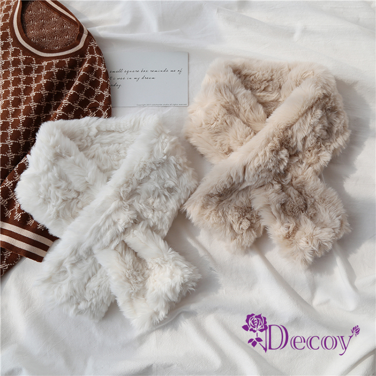 【Decoy】法式微捲*保暖交叉皮草絨脖圍圍巾/奶茶米