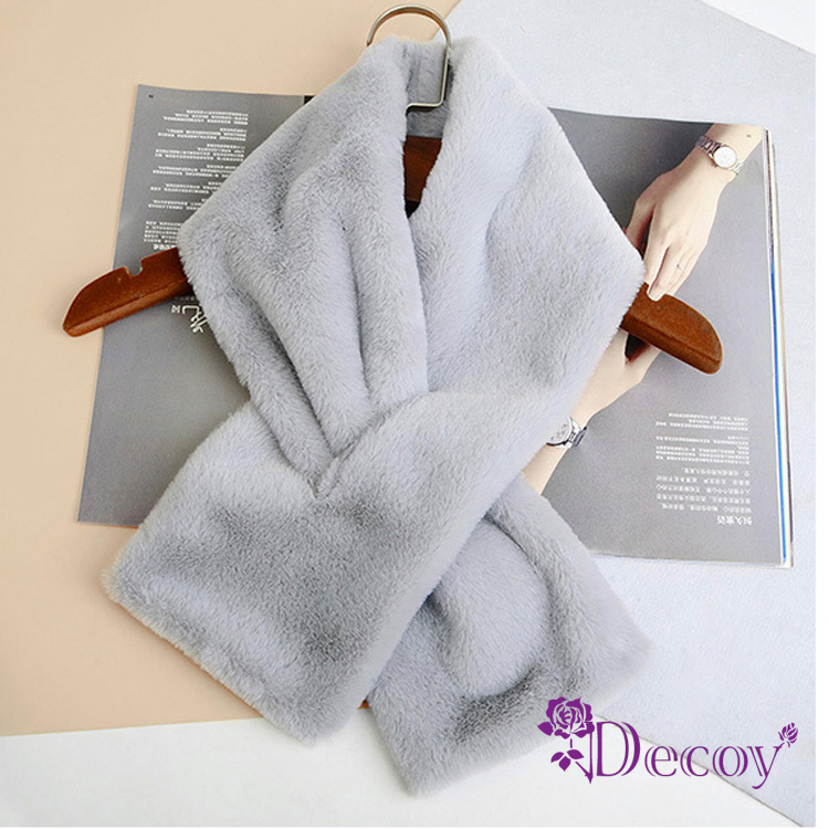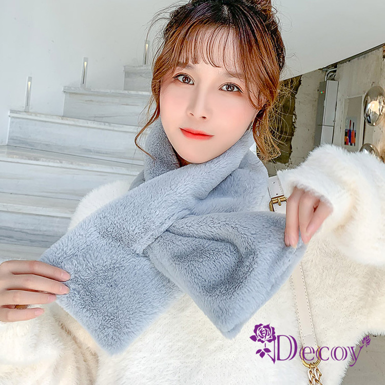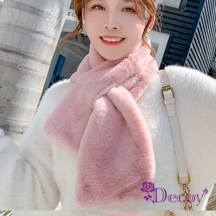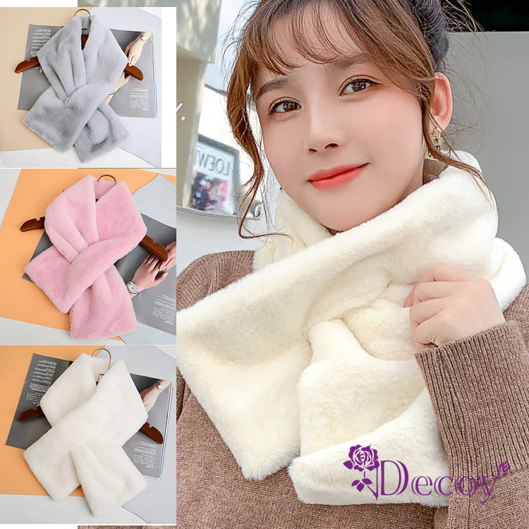 【Decoy】典雅兔毛*加厚交叉固定保暖圍巾/白
