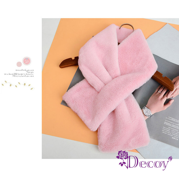【Decoy】典雅兔毛*加厚交叉固定保暖圍巾/灰