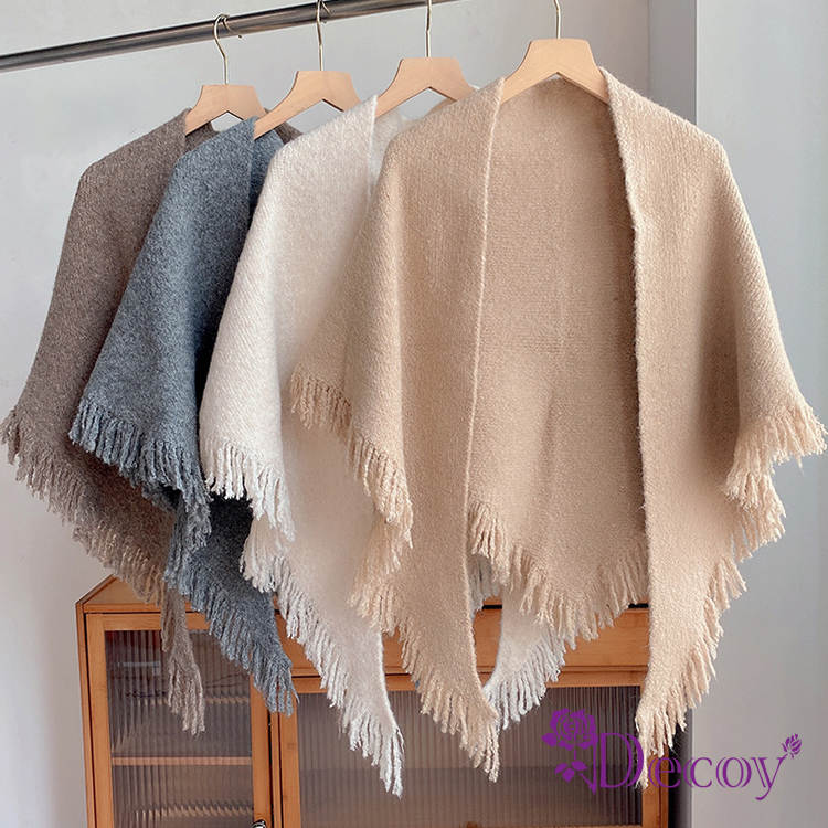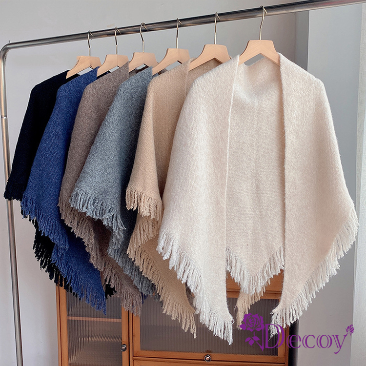簡約三角圍巾短流蘇設計,彈性極佳的保暖罩衫,