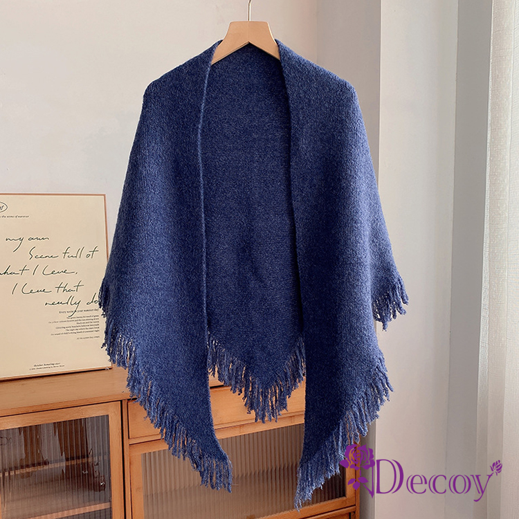 【Decoy】三角流蘇*仿羊絨保暖披肩罩衫兩用圍巾/藍