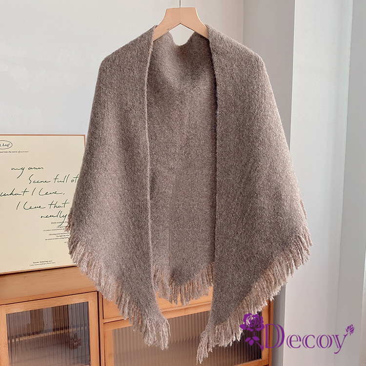 【Decoy】三角流蘇*仿羊絨保暖披肩罩衫兩用圍巾/咖啡